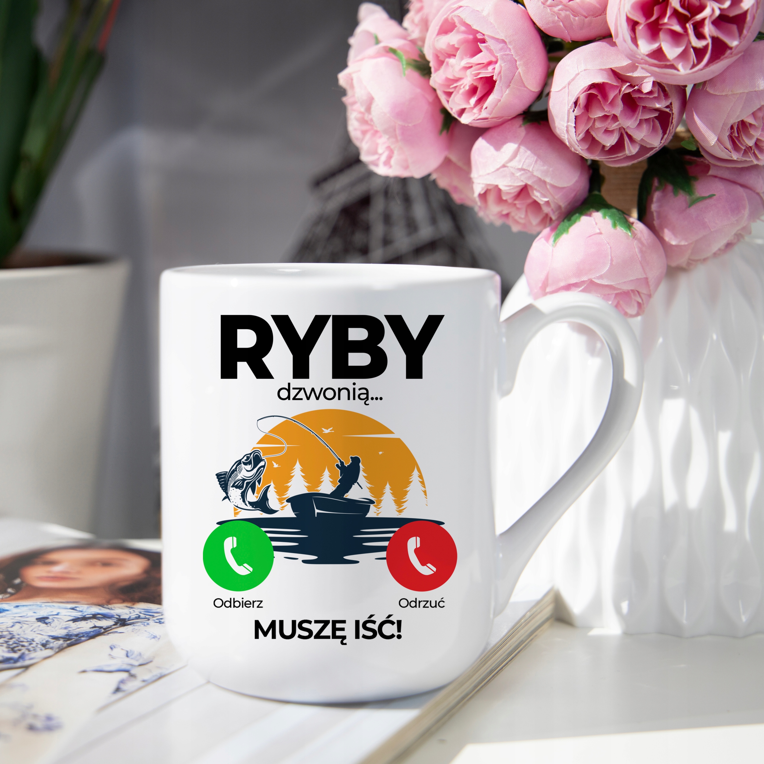 Zamów kubek „Ryby Dzwonią – Muszę Iść” i spraw, by każdy dzień zaczynał się od dobrego humoru oraz ulubionego napoju!