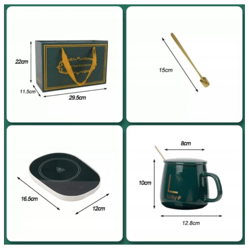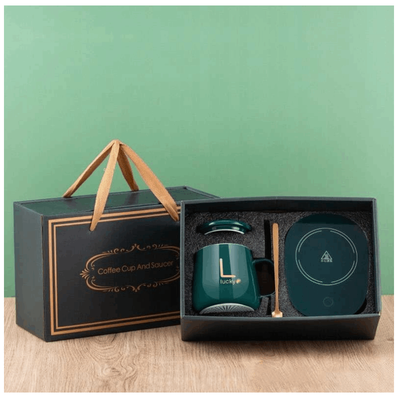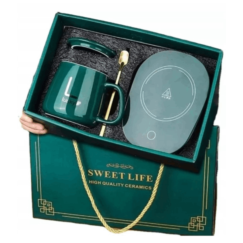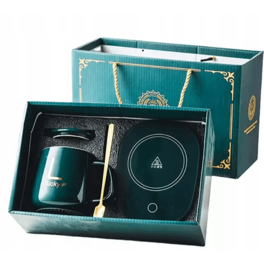 ZIELONY KUBEK „LUCKY” Z PODGRZEWACZEM 55°C – ZESTAW PREZENTOWY