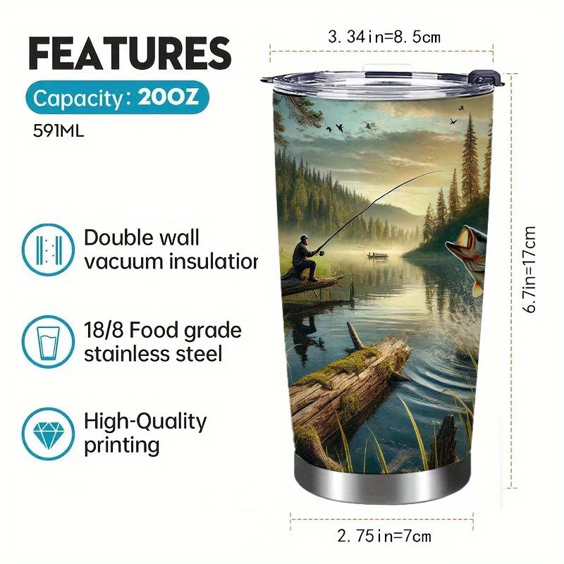 Ten 20 oz (ok. 590 ml) termos ze stali nierdzewnej z wędkarskim wzorem to idealny towarzysz dla miłośników wędkowania, biwaków i aktywności outdoorowych. Dzięki próżniowej izolacji oraz szczelnej pokrywce Twój napój zostanie dłużej gorący lub schłodzony, niezależnie od warunków.
